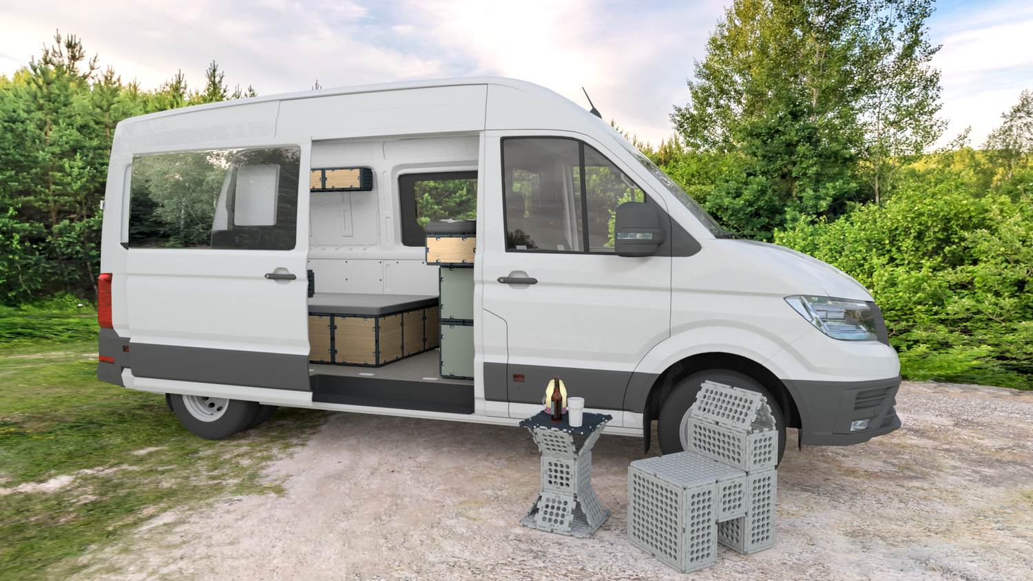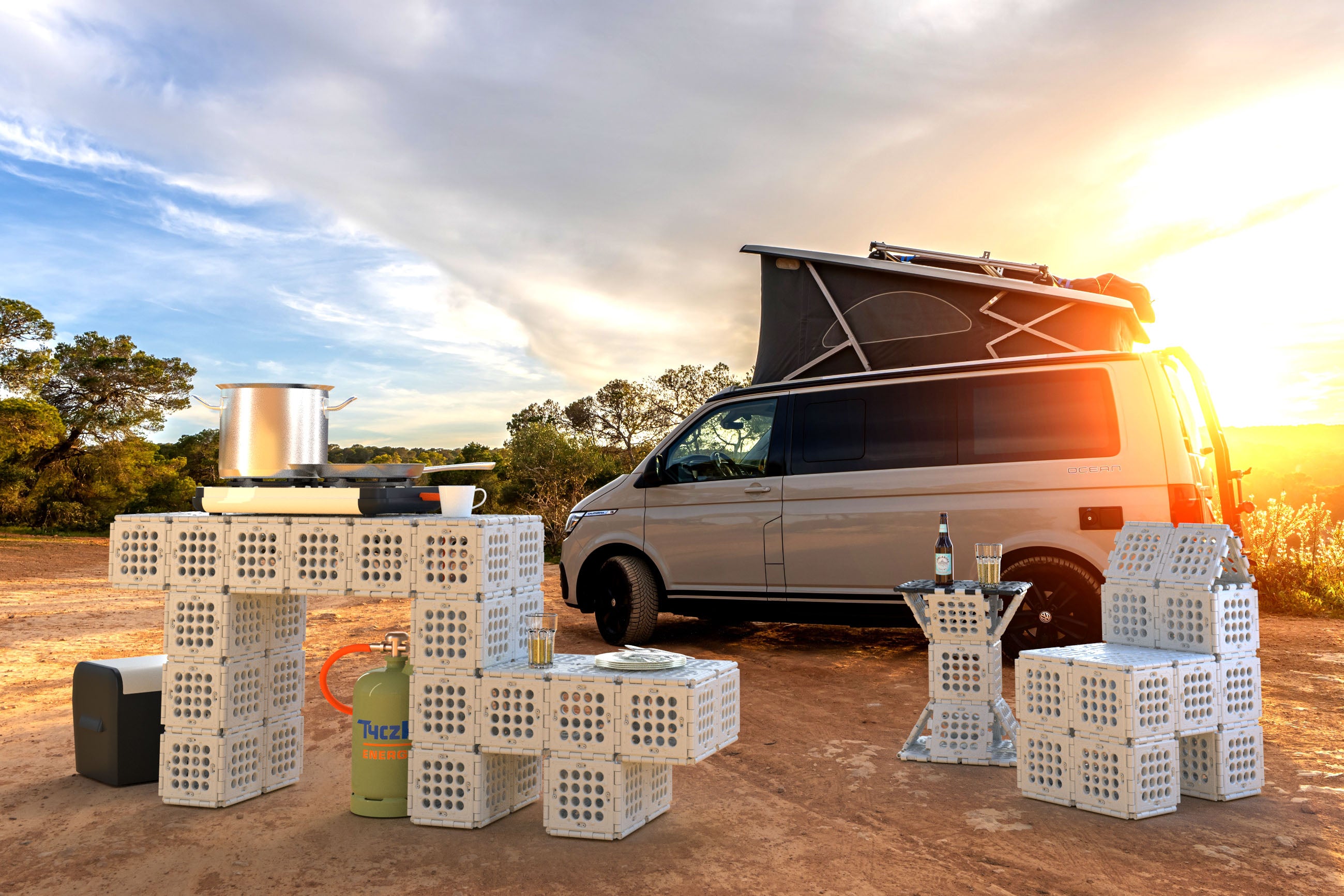 Much more than just a storage solution: Imagine that your clever storage solutions for the camper are not just for stowing things away. With boxxtool, you can transform your equipment into a practical outdoor camping kitchen or a comfortable seating area in no time at all! No more bulky equipment and tedious assembly. We offer robust and durable products that help you keep everything organized and within easy reach - and that can be flexibly adapted to your needs on the go. This way, you maximize your space and enjoy every moment in nature even more intensely.