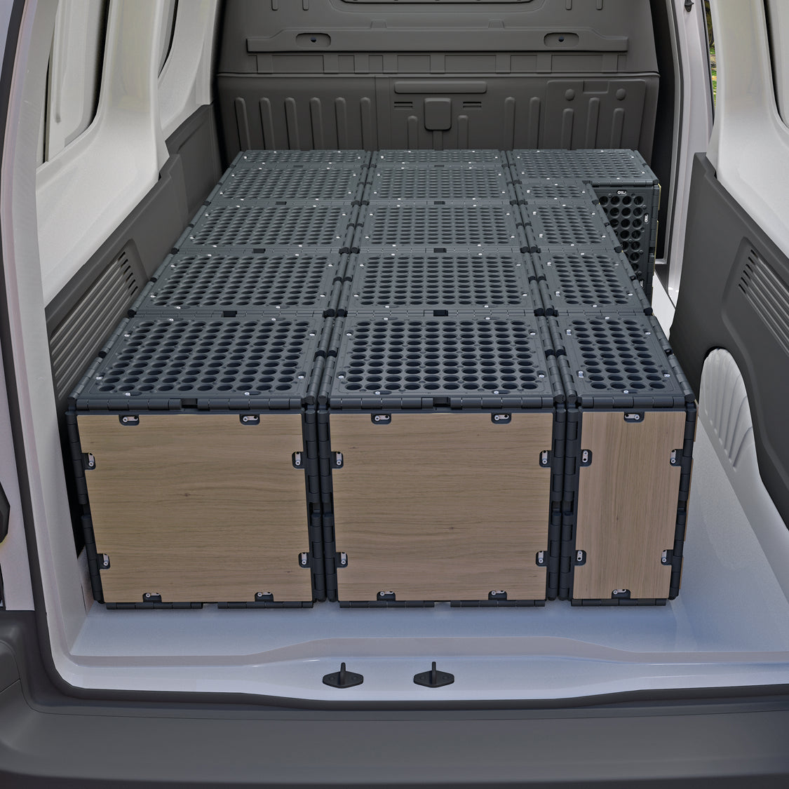 Does your high-roof combi van offer you maximum flexibility, and you want to utilize every corner optimally to organize storage and equipment cleverly? Then the boxxtool Outdoor Set S is perfect for you! This compact set is your ideal partner for bringing order and structure to your mobile home – with incredible adaptability!