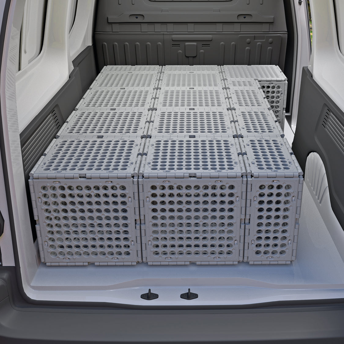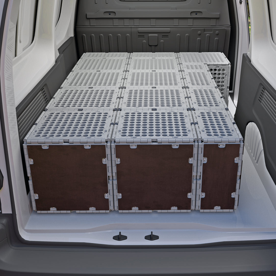What's special about our panels? They're incredibly adaptable! Every single panel can be effortlessly combined with the other sizes. This lets you create stable elements for countless purposes in and around your high-roof combi van in no time. The ergonomic holes are not just a design feature; they're also super practical: they allow for comfortable gripping and easy handling. And of course, they're perfectly compatible with our Boxxtool connectors. Speaking of connectors: So you can get started right away, your set also includes 9 accessory sets, each containing 16 Boxxtool connectors, including screws, nuts, and a matching Allen key. Everything you need to implement your individual projects!