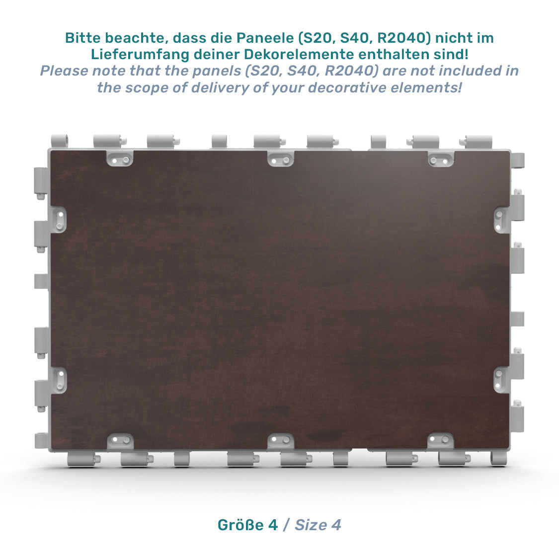 Hinweis: Das neue, universelle Dekorelement, das mit allen Paneelgrößen (S20, S40, R2040) kompatibel ist, findest du ebenfalls in unserem Shop.